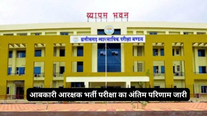 रायपुर। CG BREAKING : छत्तीसगढ़ आबकारी आरक्षक (वाणिज्यिक कर – आबकारी विभाग) भर्ती परीक्षा 2025 (ABA25) का अंतिम चयन परिणाम जारी कर दिया गया है। यह परीक्षा 27 जुलाई 2025 को आयोजित की गई थी, जिसका परिणाम पहले 19 सितंबर 2025 को घोषित किया गया था।