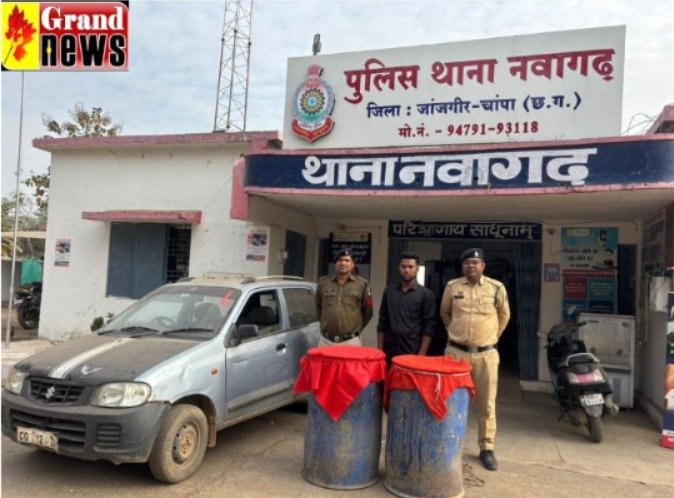 जांजगीर चांम्पा। CRIME NEWS : पुलिस अधीक्षक विजय कुमार पाण्डेय (IPS) के निर्देशन में जिलेभर में अवैध शराब कारोबार के खिलाफ लगातार कार्रवाई की जा रही है। इसी कड़ी में थाना नवागढ़ पुलिस ने ग्राम कटोद में रेड कार्रवाई करते हुए लावारिस हालत में 300 लीटर अवैध कच्ची महुआ शराब बरामद की। मौके पर अलग-अलग 8 ड्रमों में भरा महुआ लहान भी मिला, जिसे वहीं नष्ट किया गया।