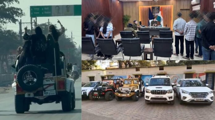 आधा दर्जन से अधिक चार पहिया वाहनों में नाबालिग छात्र-छात्रा सवार होकर सनरूफ, खिड़की और खुली जीप में बैठकर डांस और स्टंटबाजी करते दिखाई दिए। इस दौरान मौज-मस्ती में उन्होंने सड़क पर नकली नोट भी उड़ाया । जिसका वीडियो सोशल मीडिया में वायरल होने के बाद इस पर एसपी ने संज्ञान लिया और बसंतपुर थाने की पुलिस ने मामले में कार्रवाई करते हुए वाहनों को जब्त कर लिया। वही यातायात नियम का उल्लंघन करते हुए नाबालिग छात्र-छात्राओं को बैठकार वाहन चलाने वालों पर कार्रवाई की गई । इस पूरे मामले को गंभीरता से लेते हुए पुलिस अधीक्षक अंकिता शर्मा ने नाबालिक छात्र-छात्राओं और उनके अभिभावकों को बुलवाकर समझाईश दी और दोबारा इस तरह की हरकत नहीं करने को लेकर उनके द्वारा हिदायत दी गई ।