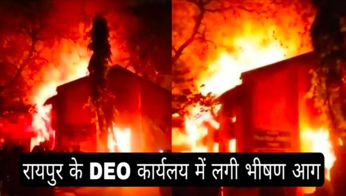 रायपुर। RAIPUR BREAKING: छत्तीसगढ़ की राजधानी रायपुर से बड़ी खबर सामने आ रही है, टैगोर नगर स्थित जिला शिक्षा अधिकारी (DEO) कार्यालय में भीषण आग लग गई है। घटना से इलाके में अफरा-तफरी मच गई है। सूचना पर दमकल विभाग की टीम मौके पर पहुंच गई है और आग बुझाने में जुटी गई है। यह मामला कोतवाली थाना क्षेत्र का है।