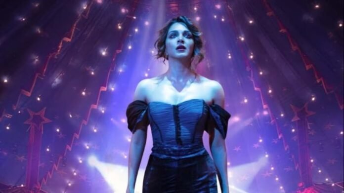 पोस्टर में कियारा ब्लैक ऑफ-शोल्डर, थाई-हाई स्लिट गाउन में डांस फ्लोर पर स्पॉटलाइट के बीच खड़ी नजर आ रही हैं, चेहरे पर गहरी भावनाएं हैं और आंखों से आंसू बहते दिख रहे हैं, जिसे देखकर फैंस उनके इस अवतार की तुलना डीसी के मशहूर किरदार हार्ली क्विन से कर रहे हैं।