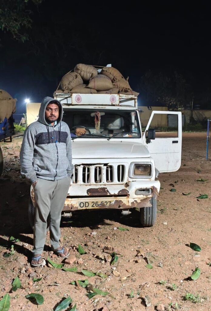 •वाहन क्रमांक OD-26-8272 से 58 कट्टा धान जप्त किया गया।