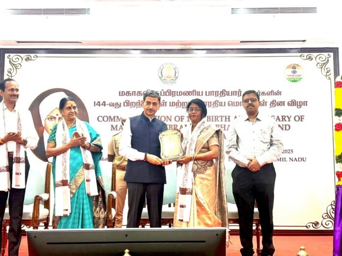 श्री सुब्रमण्यम भारती जी 144 अवतरण दिवस, भाषा दिवस पर महामहिम राज्यपाल थिरु आर एन रवि के द्वारा तिरुक्कुरल का तमिल से छत्तीसगढ़ी अनुवाद पर लोक भवन में गीता शर्मा का भव्य आयोजन में सम्मान किया गया।