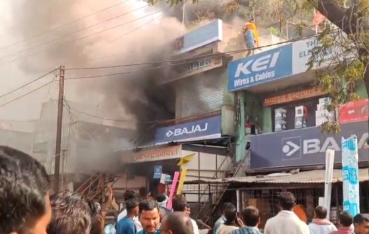 भरत सिंह चौहान, जांजगीर चांपा। CG Video : जिले के बलौदा में स्थित राजू इलेक्ट्रॉनिक्स दुकान में आज भीषण आग लग गई। आग इतनी तेज थी कि दुकान में रखा लाखों रुपये का इलेक्ट्रॉनिक सामान जलकर खाक हो गया। प्रारंभिक जानकारी के मुताबिक आग लगने की वजह शॉर्ट सर्किट बताई जा रही है। आग लगते ही आसपास के इलाके में अफरा-तफरी मच गई। घटना स्थल बलौदा बस स्टैंड के पास बताया जा रहा है। वहीं खबर लिखे जाने तक दमकल की गाड़ी मौके पर नहीं पहुंची थी। पुलिस और स्थानीय लोग आग पर काबू पाने की कोशिश में जुटे रहे।