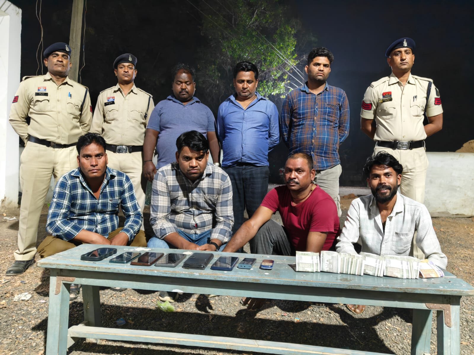पुलिस को मुखबिर से सूचना मिली थी कि कुछ लोग मोबाइल की टॉर्च की रोशनी में काट पत्ती नाम का जुआ खेल रहे हैं। सूचना पर थाना प्रभारी नरेंद्र यादव के नेतृत्व में टीम ने मौके पर रेड कार्रवाई की।